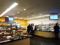 Außerdem gibt es dort noch eine Caféteria mit warmen und kalten Getränken, Backwaren und anderen Süßigkeiten. Und wenn man ganz viel Glück hat, erwischt man einen Tag, an dem der Waffel Wagen da ist und es frische Waffeln mit Kirschen und Sahne gibt.